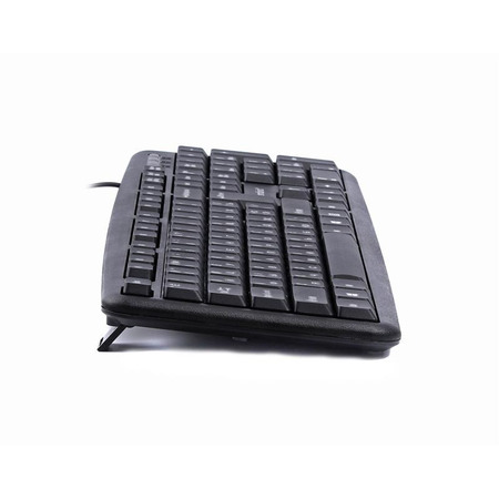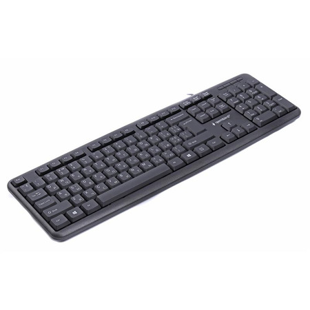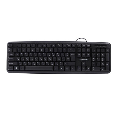 Представляем вам качественную клавиатуру GEMBIRD KB-103-UA, которая будет залогом вашей продуктивной и эффективной работы за компьютером. Данная модель характеризуется удобной конструкцией, компактным размером и стильным дизайном. Такое оборудование будет служить вам бесконечно (при условии бережного отношения). Клавиатура Gembird KB-103-UA относится к полноразмерному типу. Она выполнена в эргономичной форме, поэтому работать на ней очень удобно. Даже после интенсивного и длительного ввода данных с клавиатуры вы не будете чувствовать усталость. Выбирайте представленную модель, чтобы обезопасить себя от так называемой «болезни программиста», возникающей из-за переутомления кистей рук. Клавиатура относится к мембранному типу, который имеет ряд преимуществ. К ним относятся: минимальная высота устройства, надежная сборка, гибкость конструкции, а также маленькое расстояние между клавишами. Последний аспект избавит вас от проблемы попадания пыли и мусора внутрь корпуса. Вы сможете чистить клавиатуру не чаще, чем раз в полгода.