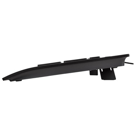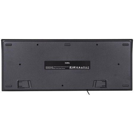 Клавиатура с полноразмерной раскладкой разделена на 3 зоны: в левой части — алфавитно-цифровые и функциональные клавиши, посередине — клавиши навигации (стрелки, клавиши Print Screen, Page Up, Page Down и другие) и справа — цифровая панель. Все клавиши расположены на привычных местах, поэтому вводить текст быстро и удобно. В правом верхнем углу клавиатуры находятся светодиодные индикаторы. При нажатии клавиш CAPS Lock, SCROLL Lock и NUM Lock загорается соответствующий индикатор.
