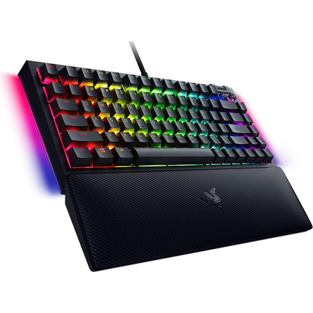 Razer BlackWidow V4 75% — это компактная механическая клавиатура с возможностью «горячей» замены переключателей и подсветкой Razer Chroma RGB, которая придется впору энтузиастам, ищущим более широкие возможности индивидуальной настройки и погружения. От установки новых переключателей до создания уникальных световых эффектов — теперь вы сами можете определить, как будет выглядеть ваша любимая игровая клавиатура.