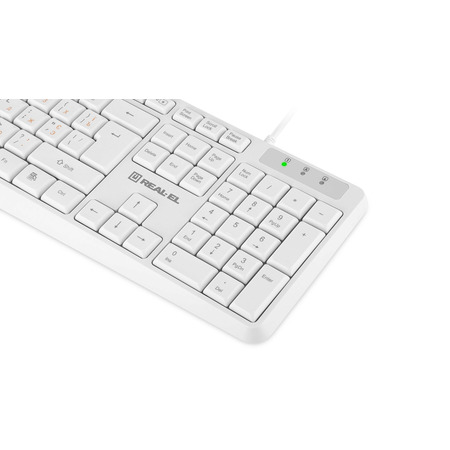 Мультимедийная клавиатура REAL-EL RK-513 - это стильная и удобная клавиатура белого цвета, предназначенная для комфортной работы и развлечений. Она оснащена тихими клавишами и эргономичным дизайном, что обеспечивает удобство при длительном использовании. Благодаря высококачественной мембране клавиши обладают плавным ходом и выдерживают более 20 миллионов нажатий. Подключение производится через USB, а функциональные комбинации с клавишей Fn позволяют быстро управлять мультимедиа, интернетом и приложениями.