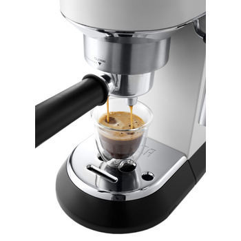 Если вы в поисках компактной и практичной кофеварки, то модель DeLonghi EC 685.W – именно то, что вам нужно. Ширина её корпуса всего 15 см, и это одна из самых узких кофеварок на сегодняшний день. Изящный современный дизайн, сочетание матового черного цвета и хромированных деталей – такое устройство заслуживает вашего внимания. Даже на очень маленькой кухне кофеварка DeLonghi EC 685.W, цена которой вполне соответствует её преимуществам, найдет свое место.