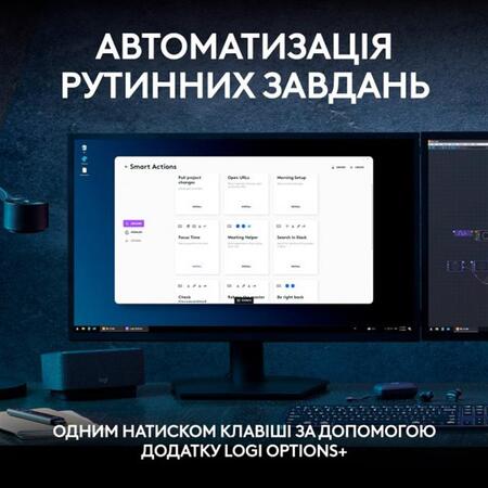 Легко создавайте и делитесь сокращениями Smart Actions, сохраняющими время, с помощью приложения Logi Options+, которое выполняет несколько действий одним нажатием клавиши.