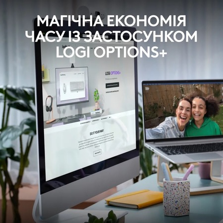 Одна мышка и клавиатура для легкого перемещения между домашним настольным компьютером и рабочим ноутбуком. Подключайте их с помощью Bluetooth или приемника Logi Bolt.