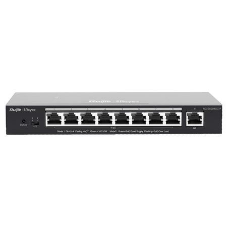 Комутаційна здатність 18 Гбіт/с; Кеш 1.5 Мбіт; Швидкість пересилання пакетів 13400000 пакетів в секунду; Порти 8 портів 10/100/1000 Base-T (PoE/PoE+), 1 вихідний порт 10/100/1000 Base-T; Стандарт PoE IEEE 802.3at/802.af; Бюджет PoE 120 Вт; MAC-адреса 4К; Максимальна кількість VLAN 16; Управління потоком, Захист від петель, Дзеркальне відображення; живлення 100-240В, Потужність споживана ≤ 130 Вт; Середній час безвідмовної роботи >200 тис. годин; Робоча температура від 0 до 40°С; 202 х 108 х 28 мм