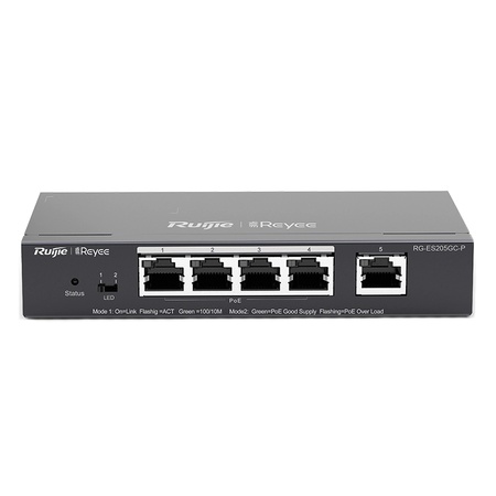 Комутаційна спроможність 10 Гбіт/с; Кеш 1Мбіт; Швидкість пересилання пакетів 7,44 млн. пакетів в секунду; Порти 4 порти 10/100/1000 Base-T (PoE/PoE+), 1 вихідний порт 10/100/1000 Base-T; Стандарт PoE IEEE 802.3at/802.af; Бюджет PoE 54 Вт; MAC-адреса 2К; Максимальна кількість VLAN 16; Управління потоком, Захист від петель, Дзеркальне відображення; живлення 100-240В, Потужність що споживається ≤ 60 Вт; Середній час безвідмовної роботи >200 тис. годин; Робоча температура від 0 до 40°С; 148 х 78 х 26 мм