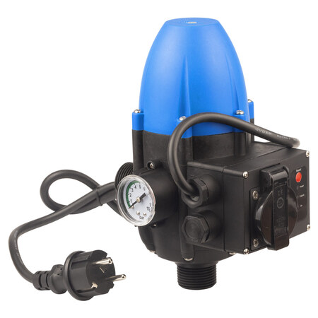 Контролер тиску електронний 1.1кВт Ø1" рег. тиск вкл 1.5-3.0 бар + розетка і вилка WETRON (779734) призначений для автоматичного управлінням електронасосом в системах водопостачання. Дозволяє підтримувати постійний тиск у водопровідній системі.