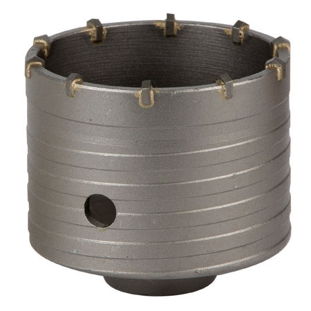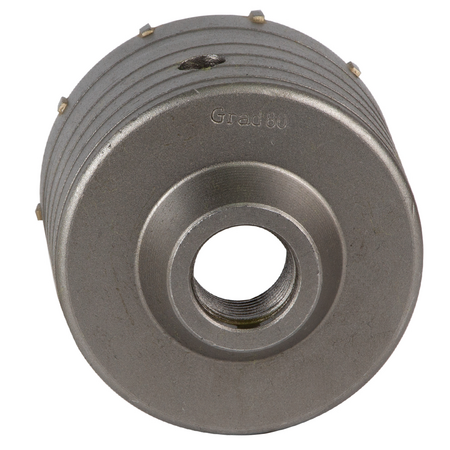 Коронка по бетону Ø80 × 70мм 10 зубців (тубус) GRAD (1514115) призначена для ударного свердління отворів в бетоні, цеглі, камені, твердих вапняках. Використовують з дрилями і перфораторами потужністю не менше 850 Вт.