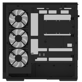 Корпус оснащен четырьмя высококачественными вентиляторами 120 мм ARGB PWM, совместим с материнскими платами BTF.