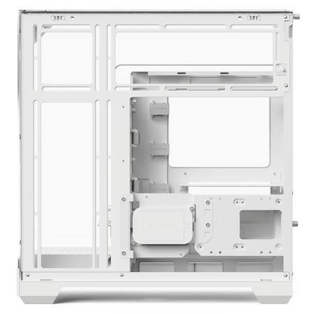 APNX V2 специально спроектирован для поддержки материнских плат BTF. Это позволяет полностью скрыть большинство кабелей за лотком, создавая идеально чистый внутренний вид, а специальная крышка материнской платы скрывает ненужные вырезы при использовании стандартных материнских плат ATX или microATX.