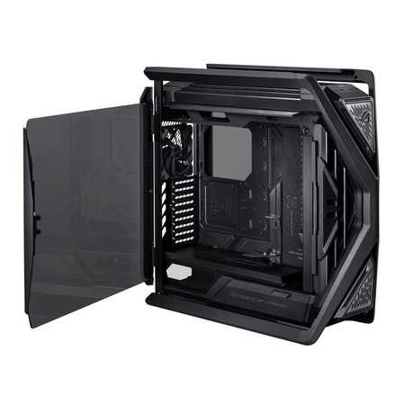 Компьютерный корпус ROG Hyperion GR701 E-ATX, 420-мм опора для двух радиаторов, четыре 140-мм вентилятора, металлический держатель графического процессора, хранилище компонентов, концентратор вентилятора ARGB, быстрая зарядка 60 Вт.