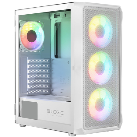 Корпус LogicConcept PORTOS MESH+GLASS ARGB - це стильний і функціональний комп'ютерний корпус у білому кольорі форм-фактору ATX, який поєднує в собі металеву сітку (mesh) та скляну панель для стильного дизайну та ефективної вентиляції. Корпус включає чотири вентилятори діаметром 120 мм з підтримкою ARGB підсвітки, які створюють кольорові ефекти та додають стиль до вашого комп'ютера.