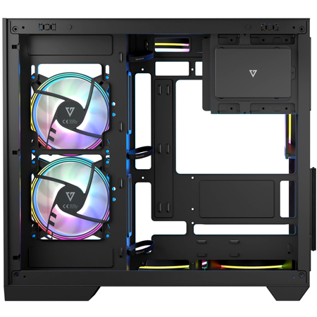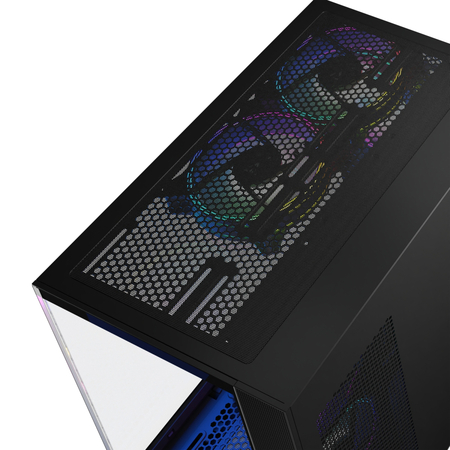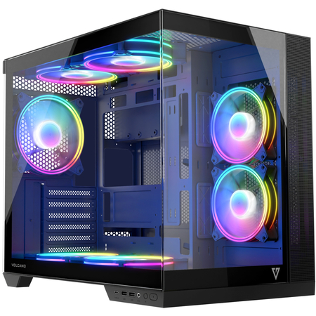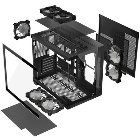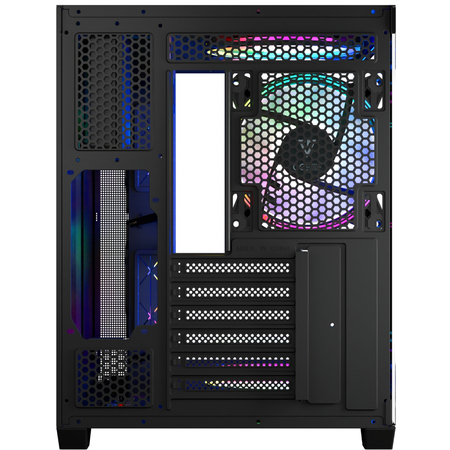 Цей корпус оснащений сімома вбудованими вентиляторами з підсвічуванням ARGB, що не тільки забезпечують ефективне охолодження, але й створюють красивий світловий ефект. Корпус також має розширені можливості для підключення різних пристроїв через порти USB і аудіо на передній панелі.