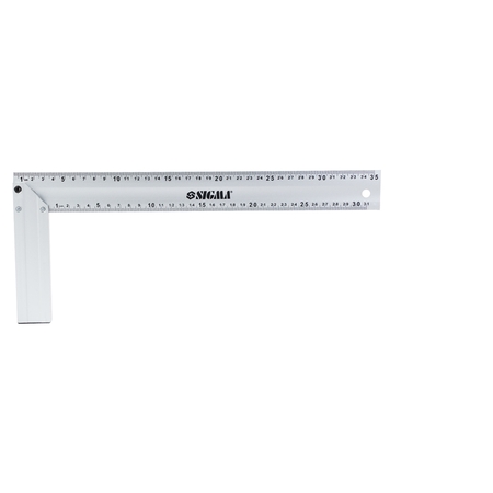 Косинець алюмінієвий 350мм SIGMA (3615351) - з метричною шкалою. Клас точності 2. Призначений для розмітки та перевірки прямих кутів, а також для перевірки кута 45 градусів при опрацюванні та складанні виробів.