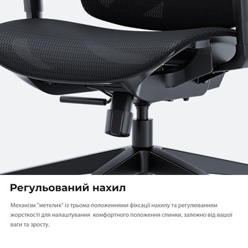Динамическая поясничная поддержка, интегрированная в спинку, активно реагирует на телодвижения, обеспечивая постоянную поддержку спины — независимо от того, сидите ли вы прямо или откидываетесь назад.