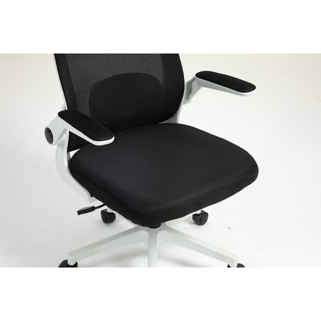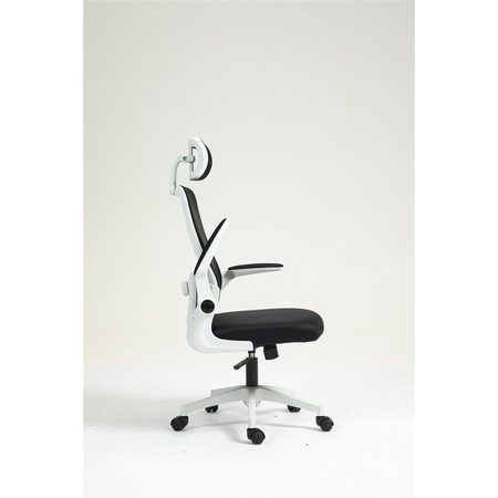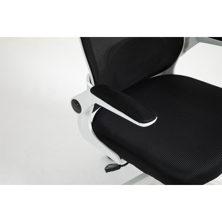 В данной модели стильные откидные подлокотники из белого пластика, дополненные мягкими накладками, что послужит вам комфортной опорой. Горизонтальная рабочая поверхность позволяет удобно разместить руки и снять излишнюю нагрузку с плечевых суставов. Винтовые крепления подлокотников позволяют поднять их вертикально, и придвинуть кресло вплотную к столу, когда кресло не используется.