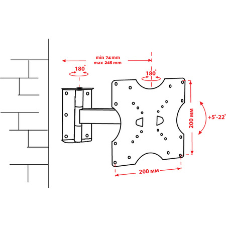Кронштейн позволяет установить телевизор с возможностью выноса от стены на расстояние до 240 мм.