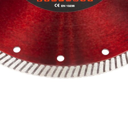 Круг відрізний алмазний Турбо Ø230×22.2мм ULTRA (1918362) призначений для різання бетону, граніту, цегли, каменю, мармуру та інших будівельних матеріалів без примусового охолодження. Корпус виготовлений із міцної сталі, здатної витримати значні механічні навантаження та високу температуру. Добре збалансована основа зменшує вібрацію на інструмент та забезпечує високу надійність під час експлуатації.
