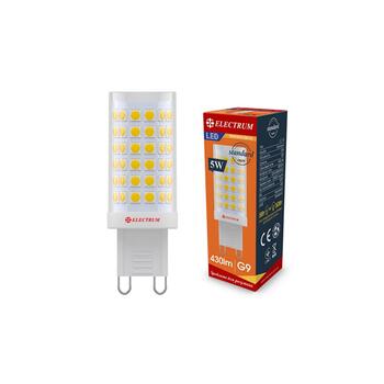 Лампа светодиодная ELECTRUM 5W G9 3000K в керамическом корпусе A-LC-1897 имеет нестандартную форму капсулы. Прозрачная колба даёт яркий свет: световые характеристики этой LED лампы достаточно впечатляющие. Световой поток равен 430 lm, угол рассеивания составляет 300 градусов, а цветовая температура — 3000 по Кельвину. Мощность данной ЛЕД лампочки при этом всего 5 Вт.