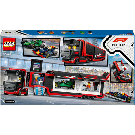 LEGO City 60445 - це захоплюючий конструктор, що включає в себе грузовик F1 з двома неймовірно швидкими автомобілями RB20 і AMR24. Цей конструктор відомий своїми докладними деталями і реалістичним дизайном, який захопить уяву будь-якого маленького любителя автомобілів. LEGO City 60445 - це відмінний подарунок для дітей, які захоплені гоночними автомобілями і конструкторами. Завдяки цьому набору діти зможуть розвивати свою творчість, уяву та моторику рук, будуючи свій власний світ гоночних пригод. Не зволікайте, купуйте LEGO City 60445 вже сьогодні та подаруйте своєму малюкові цілий світ незабутніх емоцій і розваг!