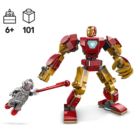 Конструктор LEGO Marvel Робот Залізної Людини проти Альтрона 101 деталь (76307) - це захоплюючий набір для створення реалістичних бойових сцен з улюбленими персонажами коміксів Marvel. У цьому наборі ви знайдете всі необхідні деталі для створення робота Залізної Людини та його ворога - Альтрона.