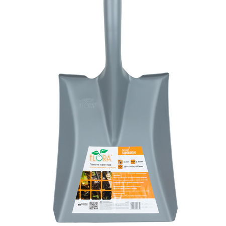Лопата совкова з пластиковою ручкою 280×240×1050мм 1.8кг FLORA (5046034) це ручний інструмент, призначений для копання, розчищення або перенесення ґрунтів та інших сипучих і рихлих матеріалів.