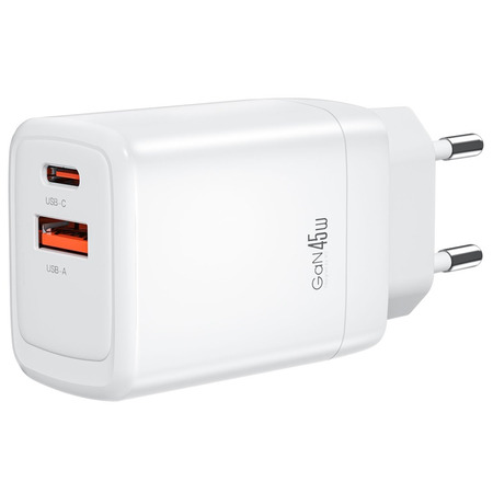 Універсальний мережевий зарядний пристрій XO CE16 має два порти - один USB-C Programmable PowerSupply (PPS) / Power Delivery (PD) потужністю 45Вт та один USB-A Quick Charge (QC) 22.5Вт.