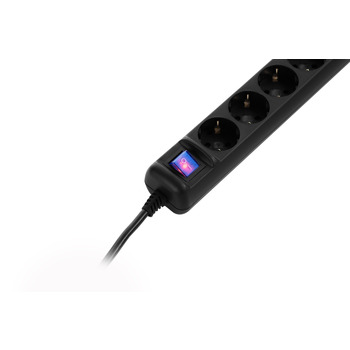 Сетевой фильтр 2Е на 5хSchuko розетки Тип F (евророзетка) с заземлением, с выключателем, со шторками для защиты детей, материал проводника: медь, мощность выходная макс.- 230В
