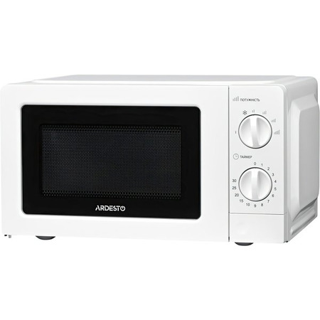 Микроволновая печь белого цвета с механическим управлением. Мощность GO-S723W – 700 Вт, есть шесть уровней регулировки, а внутренний объем равен 20 л.