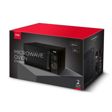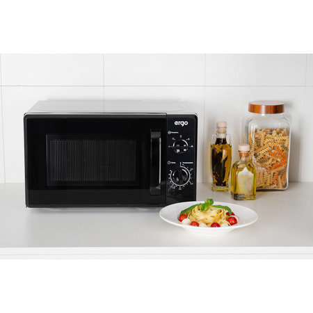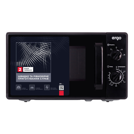 Мікрохвильова піч ERGO EM-2060 – техніка для тих, хто цінує функціональність, стиль і комфорт. Зручне та зрозуміле механічне керування, невеликий дисплей і повноцінний спектр функцій роблять ERGO EM-2060 незамінною помічницею на офісній або домашній кухні, а стильний чорний корпус чудово пасує до будь-якого інтер’єру.