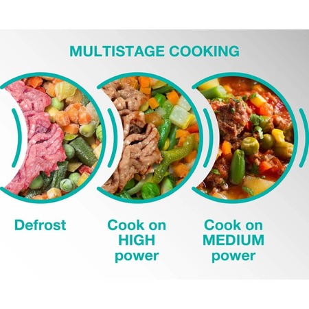 Еда готовится или разогревается до идеального состояния, поскольку тепло достигает каждой дольки. Из-за постоянного вращения тарелки микроволны эффективно и равномерно нагревают то, что вы готовите. Вращение также способствует оптимальному размораживанию.