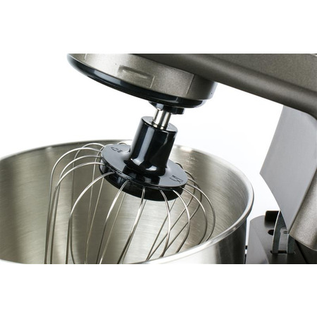 В конструкции этой модели предусмотрено поворотное окно, через которое в процессе работы комбайна Вы сможете добавлять ингредиенты. При необходимости, нажав на кнопку Turbo, можно включить аппарат на максимальные обороты. В комплекте имеется насадка для тщательного и равномерного смешивания ингредиентов, венчик из нержавеющей стали с тефлоновым покрытием для мгновенного взбивания яиц или сметаны в нежную воздушную массу и крюк для качественного замешивания теста для выпечки. Чаша в этой модели очень вместительная. Ее объем равен 6,5 литров.