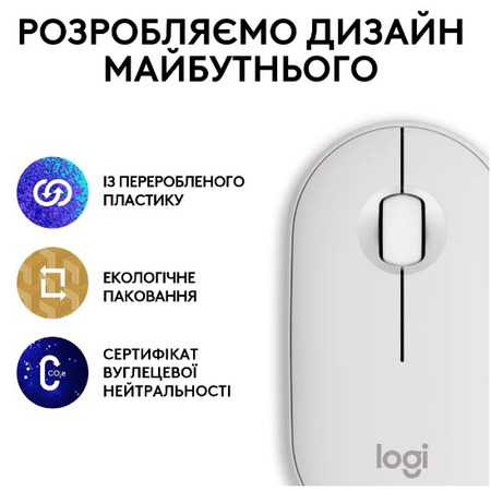 Ми не зупиняємось лише на унікальному дизайні, ми також переконані, що наші продукти виготовляються відповідально. Мишка Pebble Mouse 2 доступна в різноманітті кольорів, виготовлених з більш ніж 50% вторинної сировини. Таким чином, ти можеш обрати колір, який відповідає твоєму настрою.