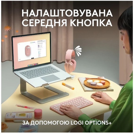 Налаштуй середню кнопку миші за допомогою додатка Logi Options+. Доступно на Windows і macOS на logi.com/optionsplus. Це дозволить тобі робити більше речей, таких як надсилання емодзі в Whatsapp чи перемішування свого плейлиста в Spotify.