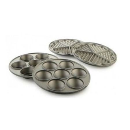 Антипригарне покриття форм Прилад комплектується набором форм для приготування вафель і капкейків. Усі форми виготовлені із міцного алюмінієвого сплаву з антипригарним покриттям. Форми стійкі до подряпин та їх легко мити.