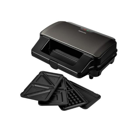 Мультимейкер Sencor, 900Вт, комплект-4 пластины, алюминий, корпус-нерж.сталь, пластик, черный