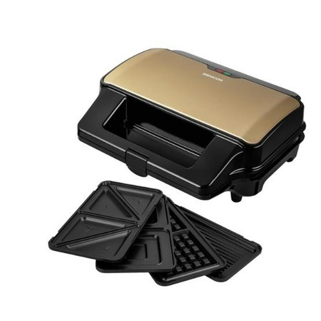 Мультимейкер Sencor, 900Вт, комплект-4 пластины, алюминий, корпус-нерж.сталь, пластик, черный-шампань