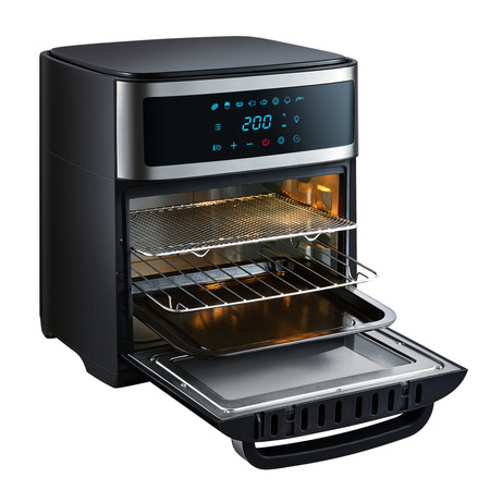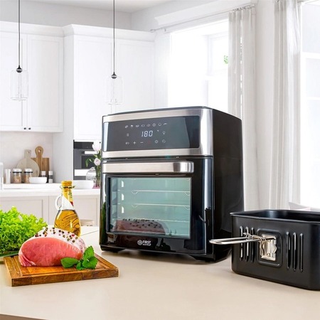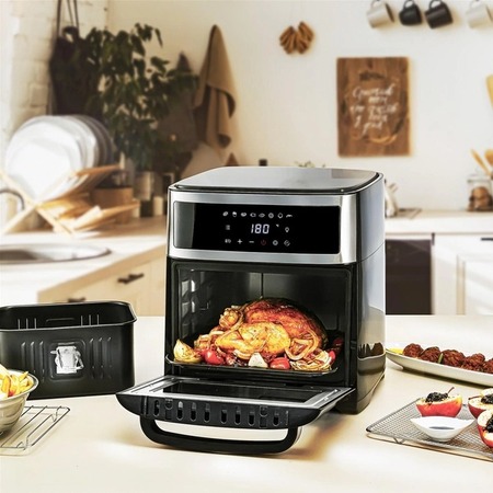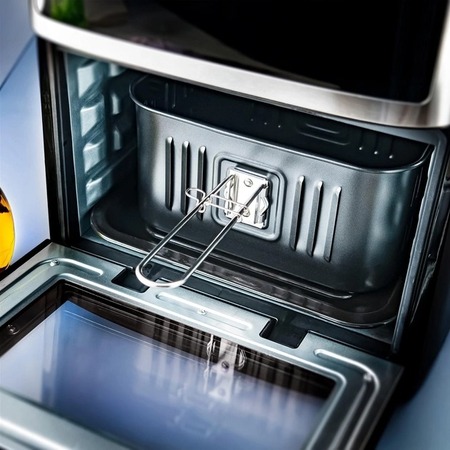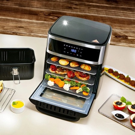 Просто вау! Настоящий универсал: многофункциональная мини-духовка мощностью 1700 Вт с внутренней подсветкой и тремя функциями в одной: фритюрница, мини-духовка и дегидратор. Возможна жарка, запекание, приготовление на гриле, поджаривание, запекание и даже обезвоживание — благодаря регулируемой температуре от 45°C до 200°C.