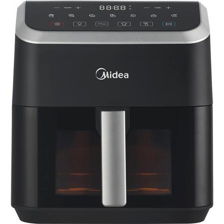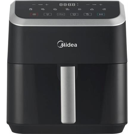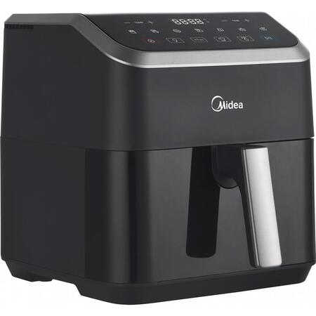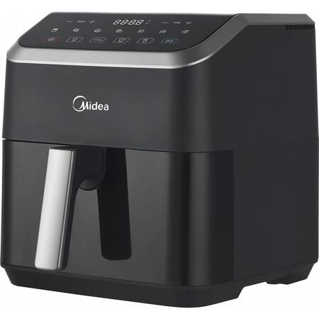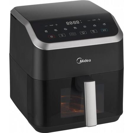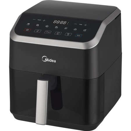 Мутльтипич Midea емкостью 5 л, технология HeatXpress На 90% меньше масла, экономия энергии и времени с 7 предварительными настройками, окно с легким обзором и освещением, антипригарное покрытие, корзина с возможностью мойки в посудомоечной машине. Midea, используя эксклюзивную технологию HeatXpress, готовит на 57% быстрее, чем в обычной духовке, экономя до 70% на счетах за электроэнергию.