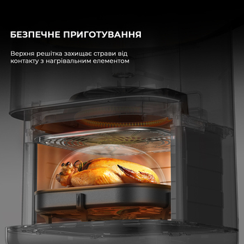 Верхняя решетка в MOVA FD10 Pro повышает безопасность, предотвращая прямой контакт между едой и нагревательным элементом. Такая конструкция снижает риски, как пережаривание и разбрызгивание масла на нагревательном элементе, способствуя более безопасному процессу приготовления.