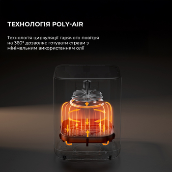 FD10 Pro обеспечивает более равномерное запекание по сравнению с одним источником тепла. Следовательно, необходимость переворачивать еду во время приготовления значительно снижается. Усовершенствованная технология двойного нагрева не только повышает качество запекания, но и обеспечивает экономию энергии до 20% и степень обезжиривания до 88%.