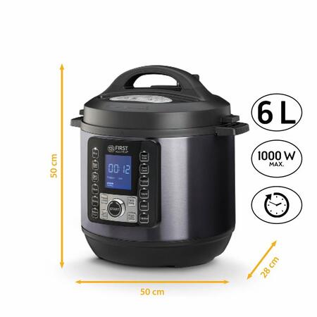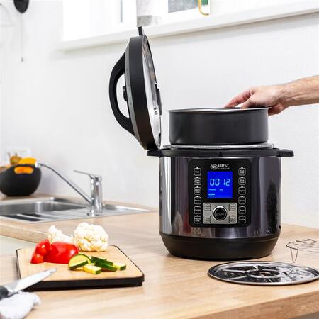 Мультиварка-скороварка First Austria FA-5130-2 представляет собой высококачественное устройство, которое обеспечивает удобство и многофункциональность в приготовлении пищи. С мощностью 1000 Вт она готовит блюда быстро и эффективно, сокращая время приготовления. С емкостью 6 литров данная мультиварка-скороварка идеально подходит для приготовления больших порций еды, что особенно удобно для семейных ужинов и приемов гостей. Количество программ составляет 12, что позволяет выбрать оптимальный режим приготовления разных видов блюд.