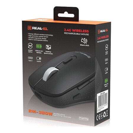 REAL-EL RM-380W – это стильная, тихая и надежная мышка, предназначенная для эффективной работы, обучения и досуга.