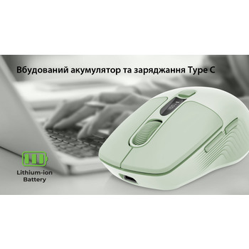 Встроенная литиево-ионная аккумуляторная батарея емкостью 400 мАч обеспечивает длительную автономную работу. Зарядка осуществляется через USB Type-C, что позволяет одновременно пользоваться мышкой и заряжать ее, обеспечивая непрерывный рабочий процесс.