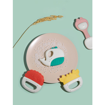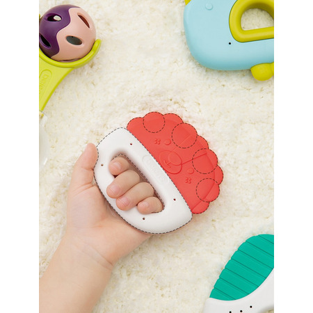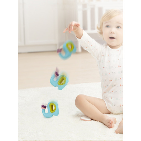 При встряхивании, издает звук для привлечения внимания ребенка. Силиконовые элементы предназначены для прорезывания зубов. Можно использовать как игрушки для купания. Стерилизация при 100°С в течение 10-30 секунд, не касаясь дна кастрюли.