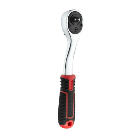 Основою комплекту є тріскачка з посадковим квадратом 1/4”, з перемикачем напрямку та кнопкою для скидання, фіксації головок. Її вигнута форма дозволяє працювати з незручно розташованими кріпленнями.
