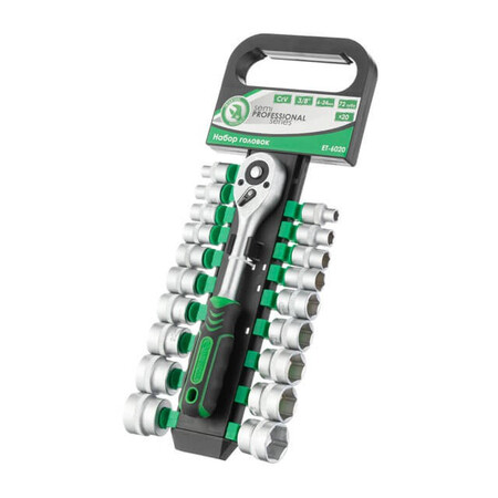Набір головок з тріскачкою призначений для монтажу та демонтажу різних різьбових з'єднань. Привід 3/8” знадобиться для виконання переважної більшості робіт, пов'язаних з ремонтом обладнання, авто-, мото-, велотехніки, а також інших робіт у побуті та в гаражі кожного автолюбителя чи домашнього майстра.