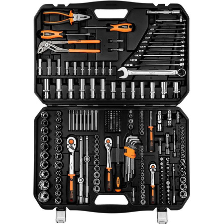 Набір інструментів Neo Tools, 233шт, 1/2", 1/4", 3/8", CrV, кейс (10-078) є ідеальним вибором для професіоналів або домашніх майстрів, які цінують високу якість та універсальність в інструментах.