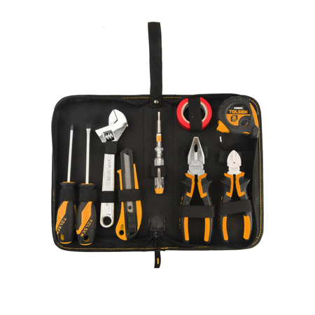Набір інструментів Tolsen, 9шт, універсальний - ідеальний вибір для будь-якого майстра або любителя дому, які шукають надійний та функціональний набір інструментів. У цьому наборі ви знайдете 9 найнеобхідніших інструментів, включаючи гаечні ключі, шарнірні гайковерти, викрутки та інші. Кожен інструмент виготовлений з високоякісних матеріалів, що забезпечує їх тривалу службу і надійність під час використання. Цей універсальний набір інструментів стане незамінним помічником у ваших будівельних та ремонтних роботах, дозволяючи вам легко та швидко впоратися з будь-яким завданням.