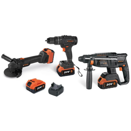 Набор инструмента Stromo PA210SET (болгарка, перф., шуруповерт, 3 АКБ, 2 ЗУ)