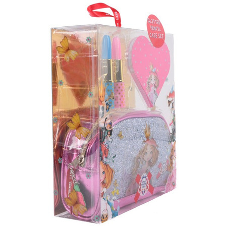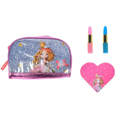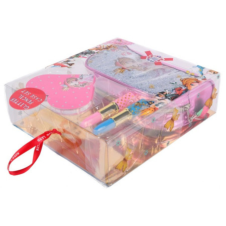 Набір включає блокнот у вигляді сердечка та 2 гелеві ручки у вигляді помади, пенал